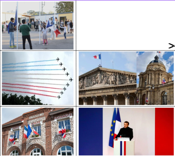 « Le drapeau tricolore est né il y a un peu plus de 200 ans. Le blanc représentait le roi, et le bleu et le rouge étaient les couleurs de la ville de Paris. Depuis ce drapeau est devenu le symbole de la République française. »