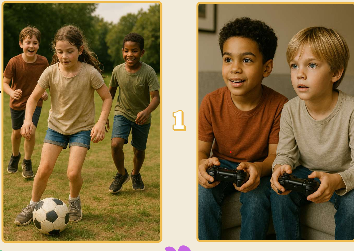 " Regardez bien ces deux images : il y a une différence importante dans l'activité des enfants. La voyez-vous ? "