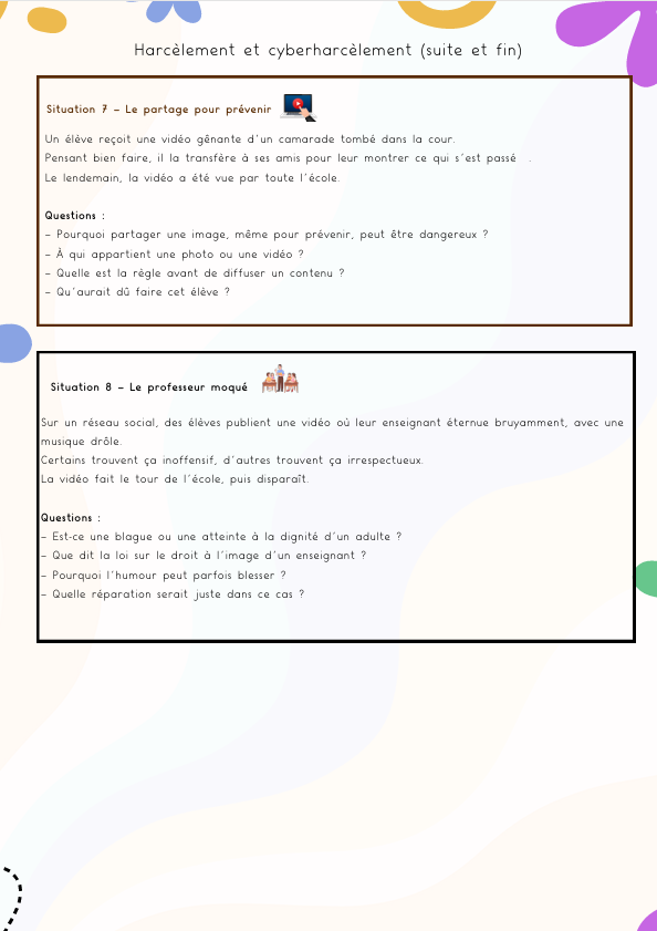 Le.La PE conclut “ Même derrière un écran, nos actes ont des conséquences. Publier, insulter ou se moquer en ligne, fait du mal et est interdit par loi, à l’école ou en dehors. “