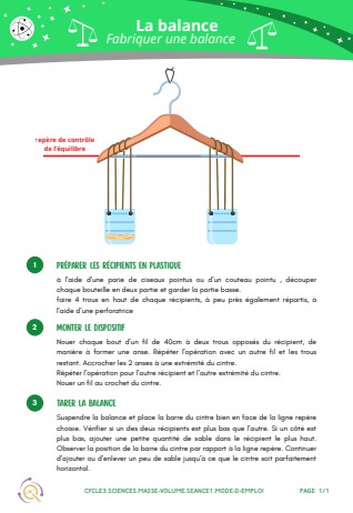 SCIENCES - Masse et volume- Séance 1 - Mode d'emploi