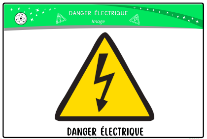 Le.la PE explique : « Nous avons travaillé sur l’électricité. Je vous ai parlé plusieurs fois des dangers liés à l’utilisation d’objets électriques. Ce symbole, que vous pourrez voir à de nombreux endroits, sert à signaler une possibilité de danger lié à l'électricité. Connaissez-vous des situations où l'électricité est dangereuse ? »
